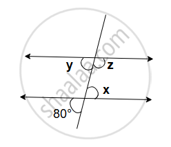 In the figure given alongside, two parallel lines are cut by a transversal. Find, giving reasons, the values of the angles x, y and z.