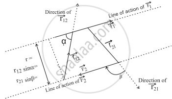 \[\vec τ\] = \[\vec r_{12}\] × \[\vec F_1\] = \[\vec r_{21}\] × \[\vec F_2\]where r12 is the position vector from the line of action of \[\vec F_2\] to \[\vec F_1\].