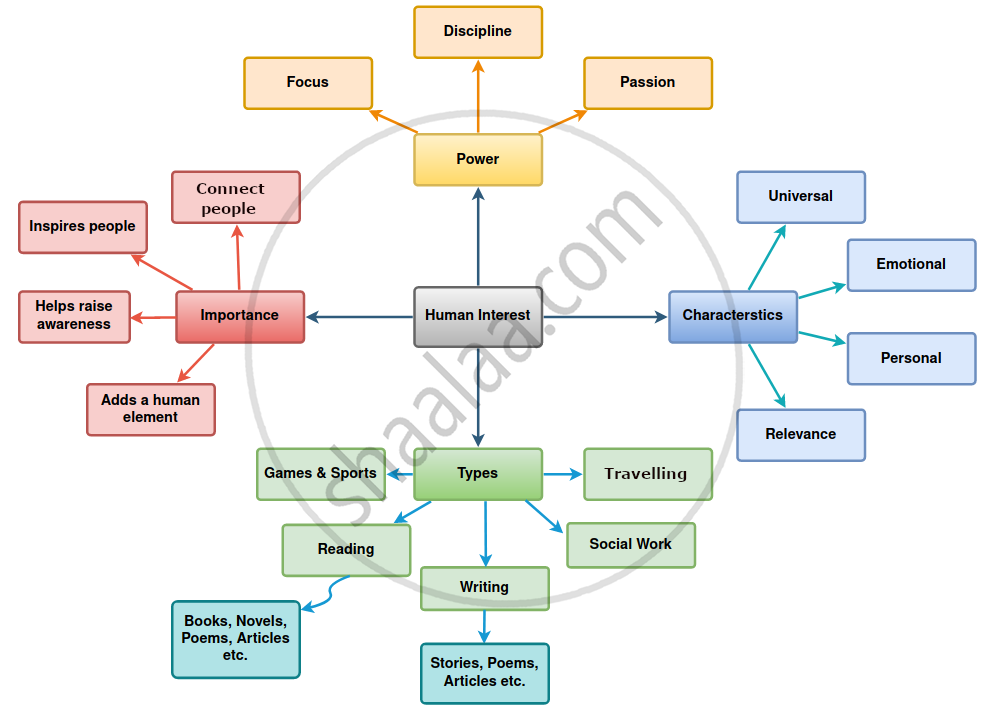 Prepare a mind map on the topic ‘Human Interest’ using your ideas, flow, design and structure.