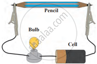 - Assemble the electrical circuit using the pencil lead as shown in the diagram and switch on the current. Observe whether the bulb glows.