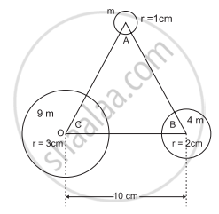 Problem: Three hollow spheres of radii 1 cm, 2 cm, and 3 cm are at vertices of an equilateral triangle ABC (side 10 cm). Find the centre of mass.