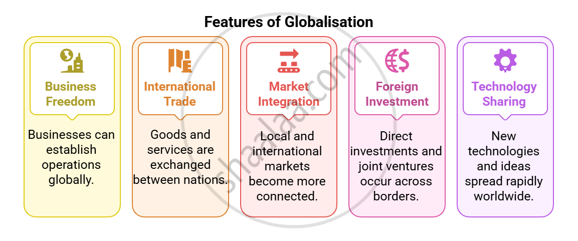 Globalisation means making the world into one big market, where countries are connected through the exchange of goods, services, ideas, technology, money, and people. It’s like the earth becoming one large community without major economic boundaries.