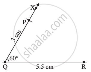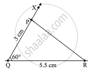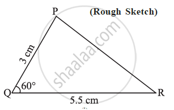 1) Construct a triangle PQR, given that PQ = 3 cm, QR = 5.5 cm and ∠PQR = 60°.