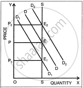 - If demand falls to D₁D₁, equilibrium shifts to E₁, and price falls to OP₁.