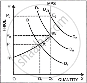 - If demand increases to D₂D₂, the new equilibrium is at E₂, and the price rises to OP₂.