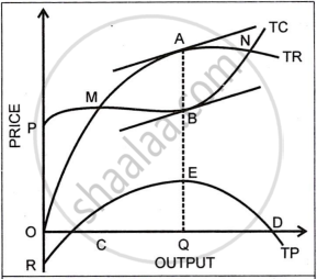 - At point E, the vertical distance between TR and TC is greatest, so profit is maximum; the corresponding output is the equilibrium output of the monopolist.
