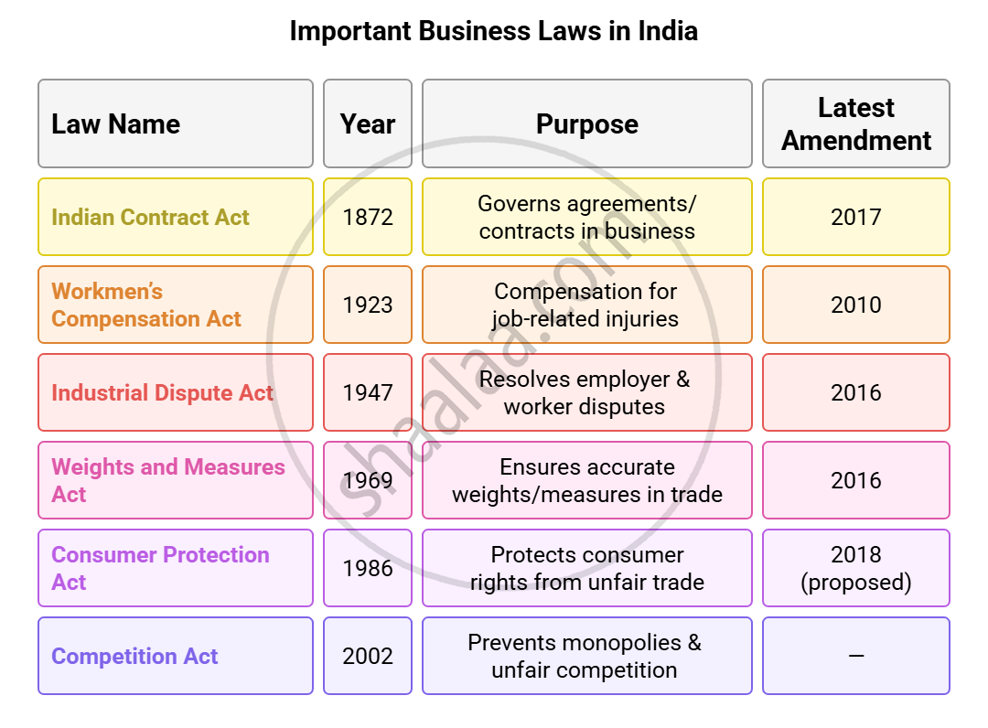 • Important Business Laws in India