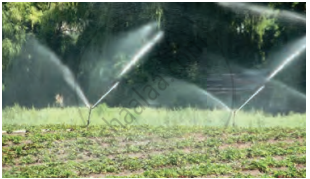| 2. Sprinkle Irrigation: Sprinklers spray water directly onto plants. Different sizes of sprinklers are used depending on the need of the crops. | ![]() |