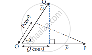 The scalar product or dot product of two nonzero vectors \[\vec P\] and \[\vec Q\] is defined as the product of the magnitudes of the two vectors and the cosine of the angle θ between the two vectors.