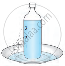 Pierce the plastic bottle with a thick needle at three points: top (point 1), middle (point 2), and bottom (point 3).