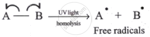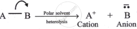 | Formation of free radicals (uncharged species) bearing unpaired electrons takes place. | Formation of charged species called ions, like carbocation or carbanion takes place. |