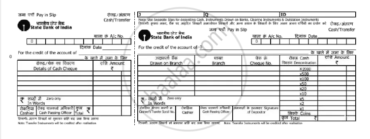 A pay-in-slip (also called deposit slip) is a form provided by banks that the account holder fills when depositing cash or a cheque into a bank account.