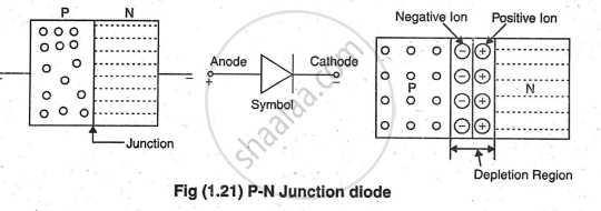 A semiconductor diode, like a valve diode, is formed by joining P-type and N-type semiconductors, creating a P-N junction. The P-type, with majority holes, acts as the anode, while the N-type, with majority electrons, acts as the cathode.