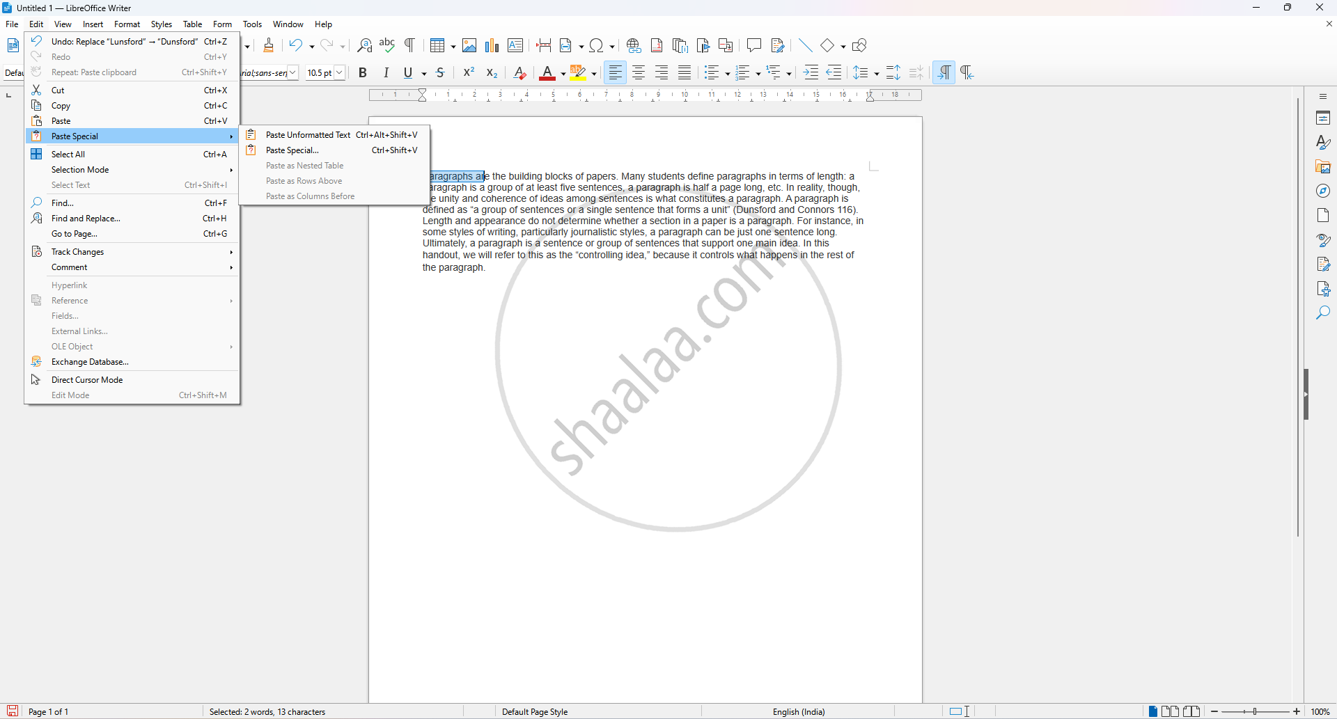 Step 4: Click Edit → Paste (Ctrl + V) This pastes the copied text at the desired position.