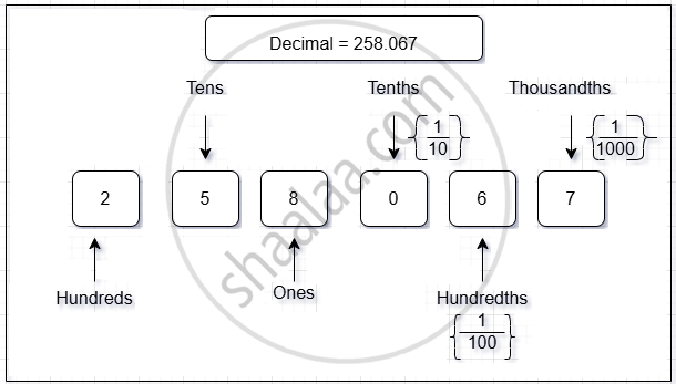 The place value table can be further extended from hundredths to `1/(10)` thousandths, i.e., thousandths `(1/(1000))`, which is written as 0.001 in decimal notation.