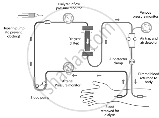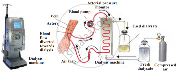 The kidneys may stop working efficiently due to injury, infection, or a decrease in blood supply. When this happens, toxic substances build up in the body, which can be life-threatening. If the kidneys fail, a process called dialysis is used to remove nitrogenous wastes from the blood with the help of a man-made machine. In dialysis:
