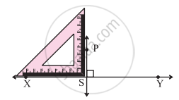 4. Slide the set square along line XY until the other arm of the right angle passes through point P.