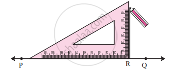 - The right-angle corner of the set square is exactly at point R.