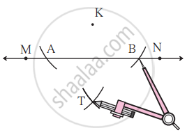 - Draw two arcs on either side of K to cut line MN.