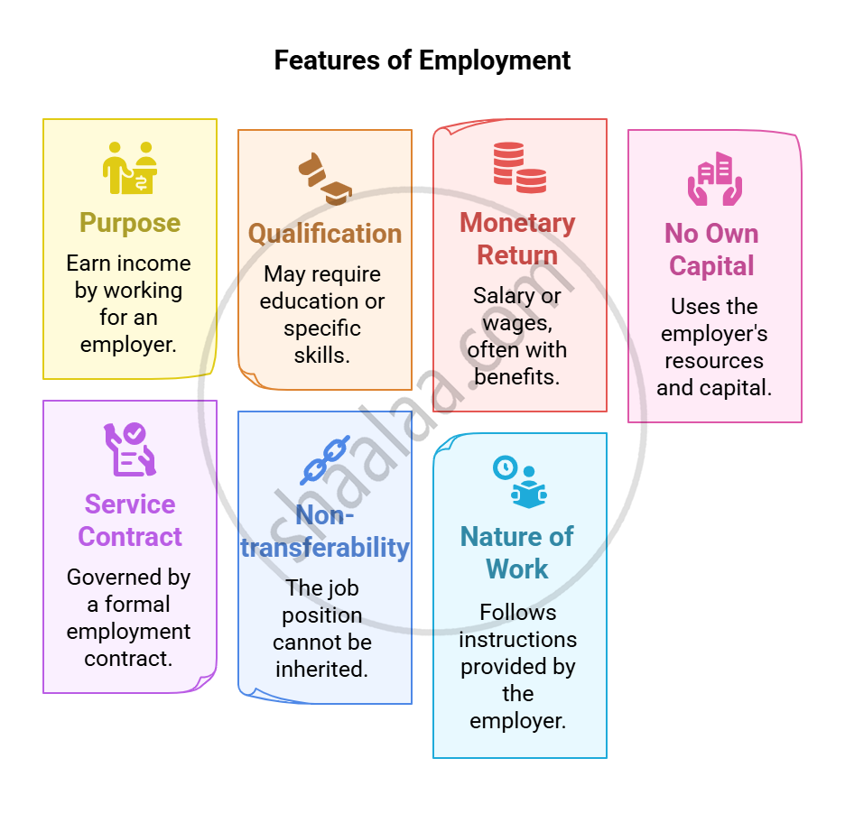 - Employment involves working for an organization or individual.