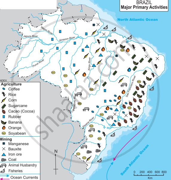 Look at the map given below. The major primary occupations in Brazil are shown here. Discuss the following points and write your observations in the notebook.
