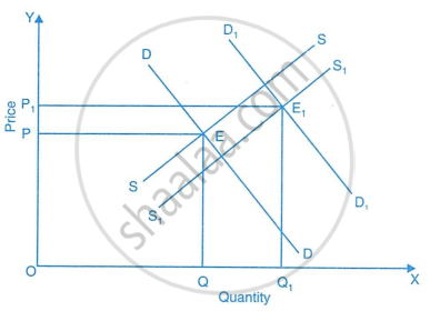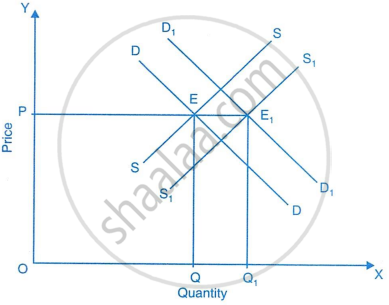 • Picture both curves (demand and supply) shifting right by an equal amount.