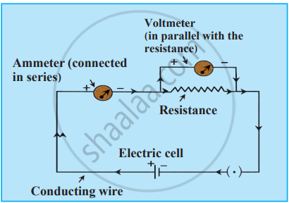 2. Requirements: Connecting wires, electric cells (battery), electrical resistor (R), voltmeter (V), ammeter (A), and plug key (switch).