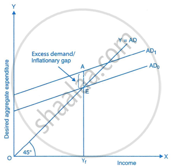 - AD shifts to AD1 → gap EF = Inflationary Gap.