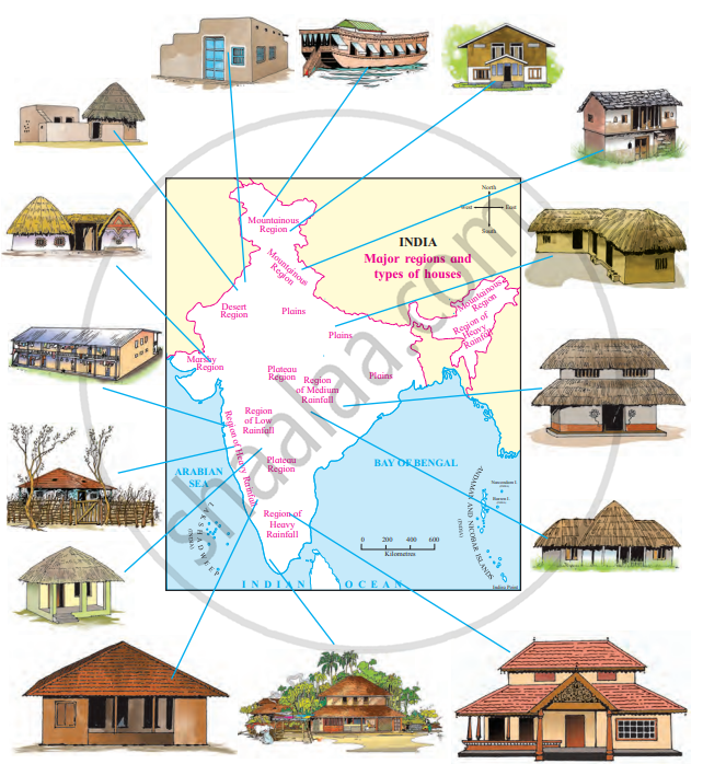 Regions of Heavy Rainfall Houses with sloping roofs to allow rainwater to run off quickly. Houses in Kerala and Assam have sloping roofs made from tiles or thatch.