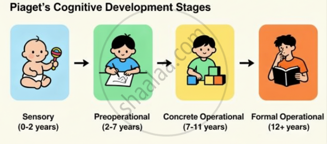 - The four stages are: Sensorimotor (0–2 years), Preoperational (2–7 years), Concrete Operational (7–11 years), and Formal Operational (12+ years).