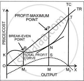 - The profit‑making range of output lies between OL and ON, where TR > TC.