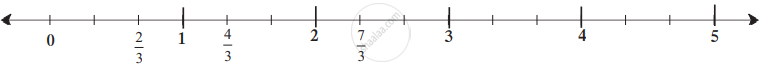 Show the fractions `2/3, 4/3, 7/3` on the number line.