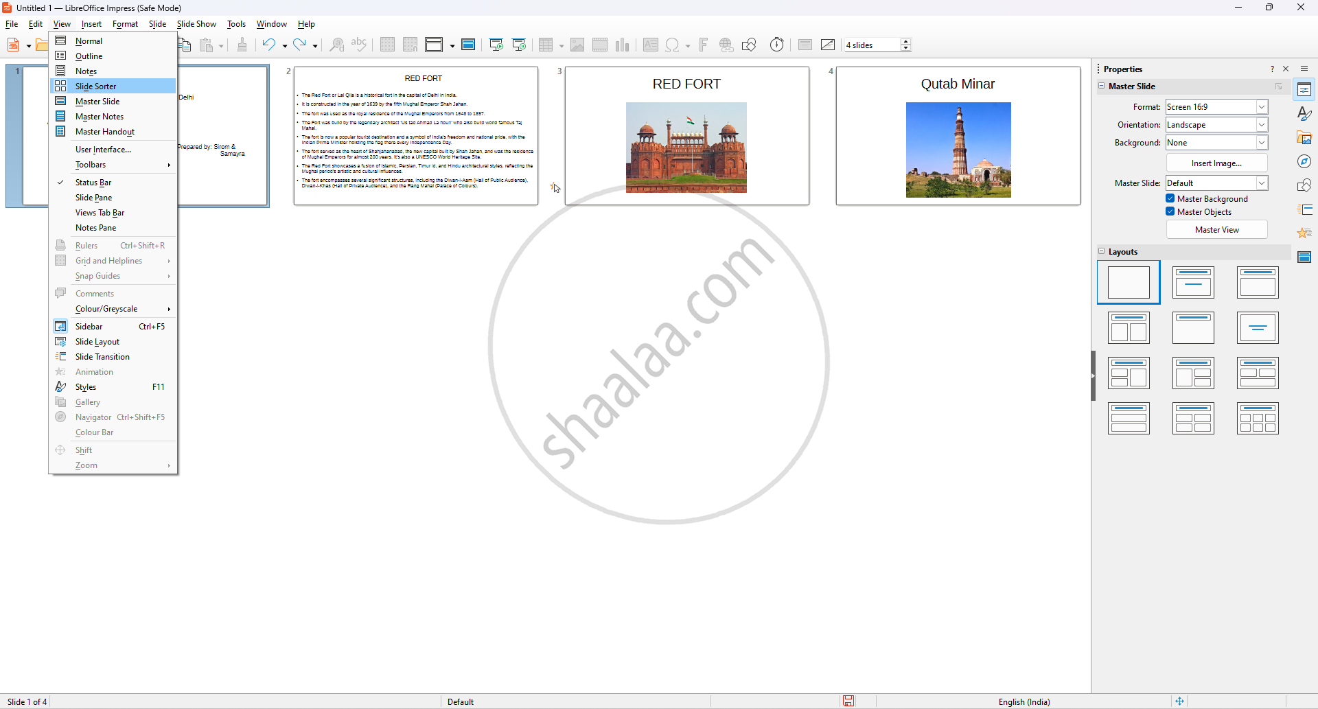 Step 1: On top bar menu Click on View → Slide Shoter View. The pages will appear on one page, and the user can arrange the pages according to the requirement.