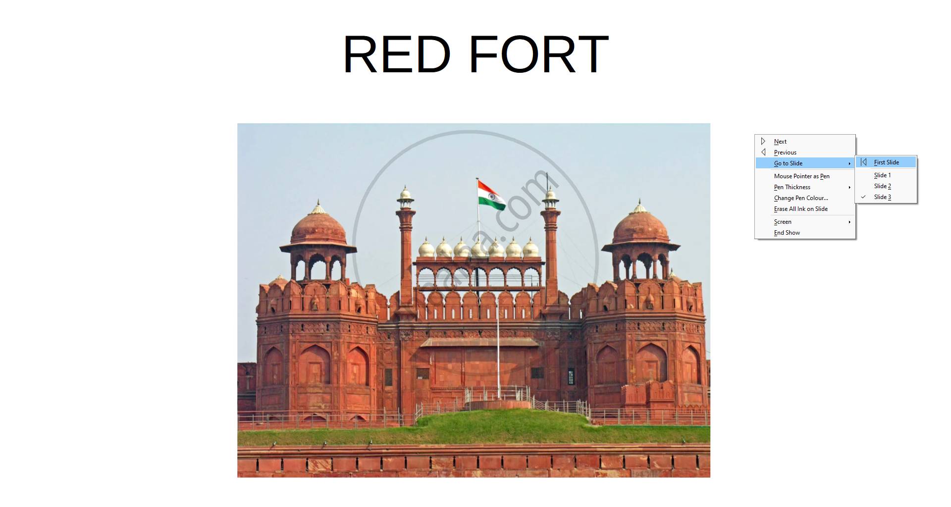 Step 2 : Then right-clicking anywhere on the screen brings up the floating menu that allows navigation of the slides.