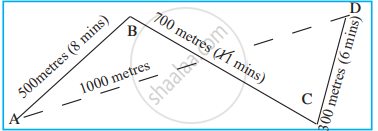 Sheetal’s speed along path A = `"Distance"/"Time"` = `"500 m"/"5 minute"` = 100 m/minute