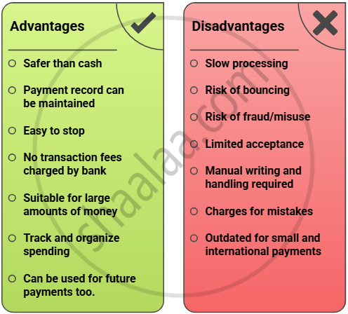 - Cheques are less used for small or online payments today.