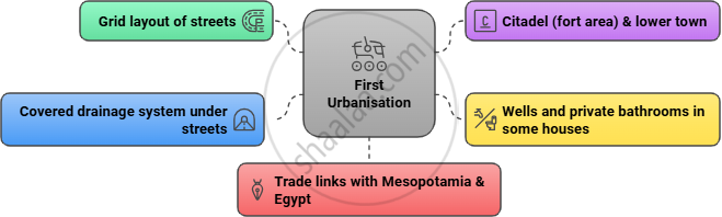 The First Urbanisation happened during the Indus Valley Civilization, with cities like Harappa and Mohenjo-daro showing grid-planned streets, advanced drainage, and trade with other ancient cultures.