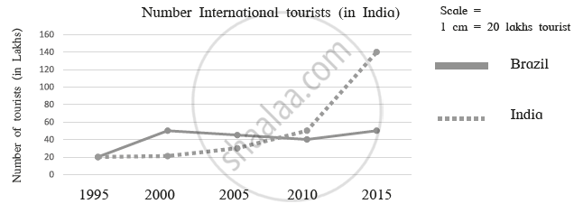- In which year do India and Brazil have the same number of international tourists?