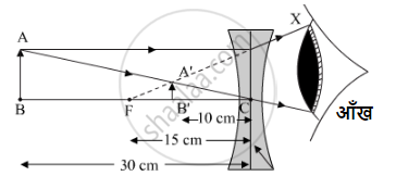 वस्तु को अवतल लेंस से 30 सेमी की दूरी पर तथा बाईं ओर रखा जाना चाहिए।
