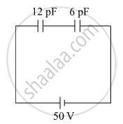 A 12 pF capacitor is connected to a 50 V battery. How much electrostatic energy is stored in the capacitor? If another capacitor of 6 pF is connected in series with it with the same battery connected across the combination, find the charge stored and potential difference across each capacitor.