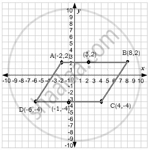 A (- 2, 2), B(8, 2) and C(4, - 4) are the vertices of a parallelogram ABCD. By plotting the given points on a graph paper; find the co-ordinates of the fourth vertex D.