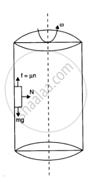 As shown in the figure, the normal reaction (N) of the wall on the man acts in the horizontal direction towards the axis of the cylinder while the force of friction (f) acts vertically upwards. The required centripetal force will be provided by the horizontal reaction N of the wall on the man i.e,
