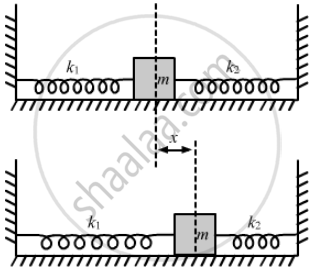 A block of mass m is attached to two unstretched springs of spring constants k1 and k2 as shown in the following figure. The block is displaced towards the right through a distance x and is released. Find the speed of the block as it passes through the mean position shown.