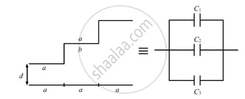 A capacitor is made of a flat plate of area A and a second plate having a stair-like structure as shown in figure . The width of each stair is a and the height is b. Find the capacitance of the assembly.
