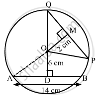 We are given AB = 14 cm, OD = 6 cm, MO = 2 cm, PQ = ?