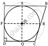 A circle with centre O and radius 8 cm is inscribed in a quadrilateral ABCD in which P, Q, R, S are the points of contact as shown. If AD is perpendicular to DC, BC = 30 cm and BS = 24 cm, then find the length DC.