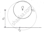 A circular coil of radius R is carrying a current l1 in anti-clockwise sense. A long straight wire is carrying current l2 in the negative direction of X-axis. Both are placed in the same plane and the distance between center of coil and straight wire is d. The magnetic field at the centre of coil will be zero for the value of d equal to