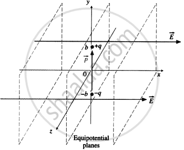A dipole with its charges, - q and + q located at the points (O, -b, O) and (O, +b, O) is present in a uniform electric field E. The equipotential surfaces of this field are planes parallel to the yz plane.