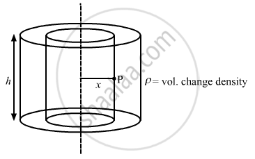 A long cylindrical volume contains a uniformly distributed charge of density ρ. Find the electric field at a point P inside the cylindrical volume at a distance x from its axis (see the figure).