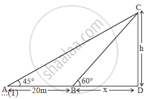 In Δ ADC , tan 45° = `h/(20 + x)`